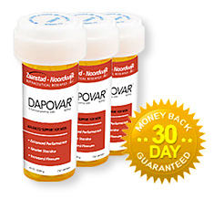 Dapovar comes with a complete 100% Iron Clad money back guarantee. It states that if you don't like the product for any reason you can return the bottle within 60 days of your purchase date for a full refund of the bottle price. That's how confident we are in the effectiveness of Dapovar . Our guarantee has been called the strongest guarantee in the industry, but it is a guarantee you will never even use! The only real question you will have is, how do I get more?