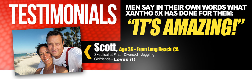 "I have always been worried that women think my penis is small. I have been told it was average before and I did not like the feeling of thinking that if I was screwing a girls she would be thinking of an old lover with a bigger penis. I have added about two inches since using Xantho5X and I feel great. I think I can hold my own with any guy now!"