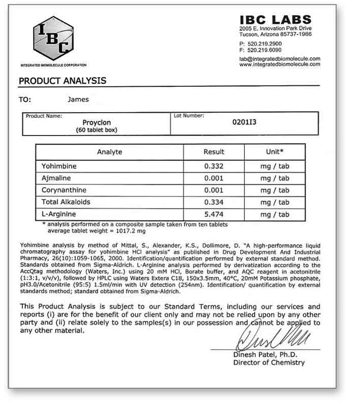 Lab tests reveal that Procylon does not even contain 1mg of yohimbine. However even more shocking is the fact that each tablet contains under 6mg of L-Arginine. This means each serving of Procyclon contains about 12mg of L-Arginine. Clinical studies show that 2,500mg of L-Arginine are needed daily to achieve results. Men are getting ripped-off! This is a total scam!