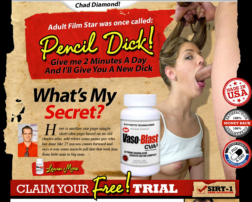 Thanks to Chad Diamond you can now get a FREE Trail bottle of VASO-BLAST and put it to the test yourself. Don’t just take his word for it that it will make you penis longer and thicker – See and experience for yourself what other men have already discovered – VASO-BLAST will radically change the size and appearance of your penis.