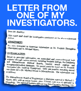 So many of the doctors touting male enhancement products on the Internet and through direct mail are absolute fakes. They are literally just made up. The photos of the so-called doctors can be purchased on the Internet for less than $5! Former Enzyte owner, and current federal prisoner Steve Warshak, admitted in court at his trial that he ran ads in national magazines and said the natural male enhancement pill Enzyte was developed by a doctor from Harvard and a doctor from Stanford, and that it turned out neither of these doctors existed. He totally made them up.