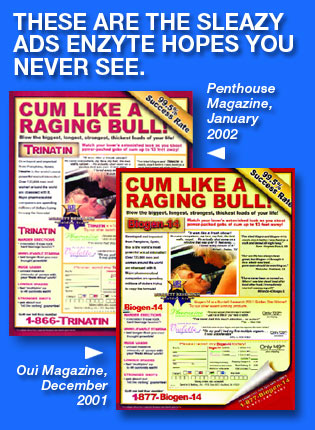 These sleazy ads which used the same LifeKey post office box as the original Enzyte ads are a far cry from the classy pharmaceutical advertising used for Enzyte.