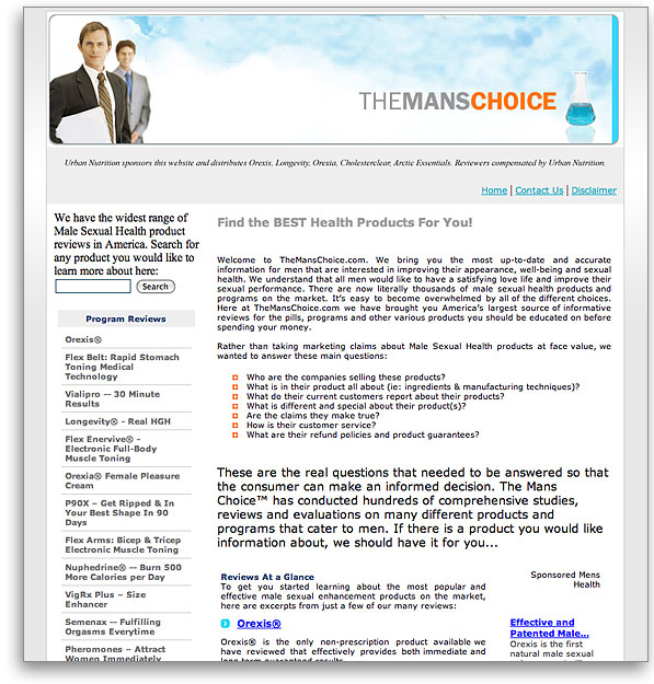 These two websites were set up to sell Orexis. They even say on the front of both bogus websites that each website is sponsored by Urban Nutrition, the distributors of Orexis! So how can they be unbiased or truthful when the product they sell they rate number one? At least they tell you right up front who they are. They must think most guys won’t see this, and if the authorities come after them for running a scam, they can say, “Hey, we tell people right up front we own the products we rated #1." They can say whatever they want. The bottom line is, this site is just another male enhancement scam. If you see the lab report on Orexis you’ll understand what a joke it is. Orexis is not sold in stores and they never advertise in any magazines or anywhere else. Their entire business is built on this fake website. Don’t let them trick you out of your money!