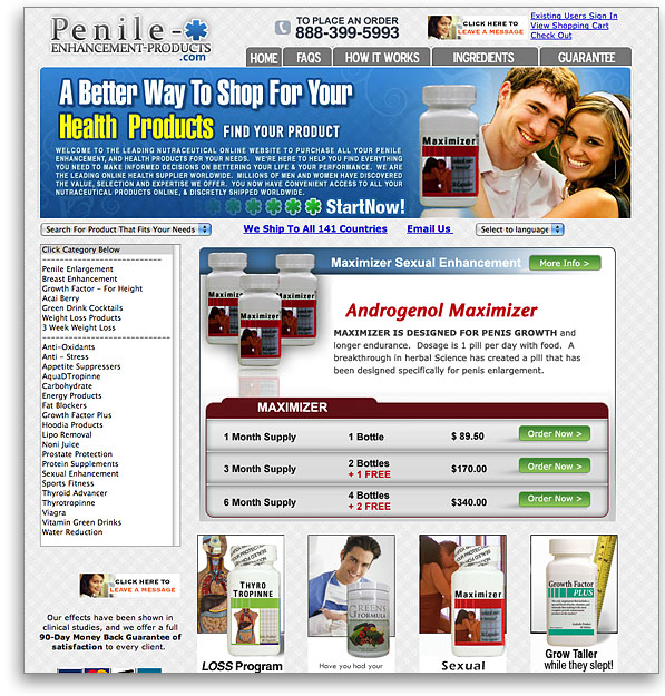These two websites were set up to sell Orexis. They even say on the front of both bogus websites that each website is sponsored by Urban Nutrition, the distributors of Orexis! So how can they be unbiased or truthful when the product they sell they rate number one? At least they tell you right up front who they are. They must think most guys won’t see this, and if the authorities come after them for running a scam, they can say, “Hey, we tell people right up front we own the products we rated #1." They can say whatever they want. The bottom line is, this site is just another male enhancement scam. If you see the lab report on Orexis you’ll understand what a joke it is. Orexis is not sold in stores and they never advertise in any magazines or anywhere else. Their entire business is built on this fake website. Don’t let them trick you out of your money!